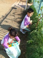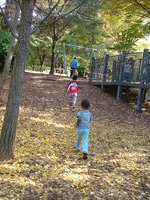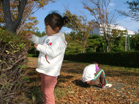 湖白と真白はグランド脇で落ち葉を集めたり、時々パパの様子に見入ったり。湖白の目には、グランドを走るパパの姿がかっこよく見えたようです(←そう申しておりました)。