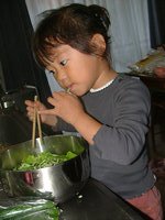 左手も器用に使うので、包丁を持つのは両手色々ですが、まな板から切った物をお鍋に移す時なんて、よく私がやるのを見ているもんだなぁ〜と感心です。