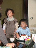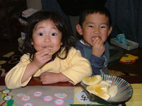 珍しくパパが、ボジョレ−ヌ−ボ−を片手に早めに仕事を切り上げて帰ってきてくれたので、私が焼いたピザを食べ、なつかしの披露宴ビデオを見ながらお祝いしました。