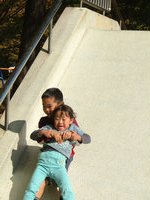 階段や滑り台、真白は全てのことにおいて湖白の手を取り、導いてあげていました。湖白もそんな真白を頼り、ぴったりくっ付いて廻っている姿がまぁかわいいっ。