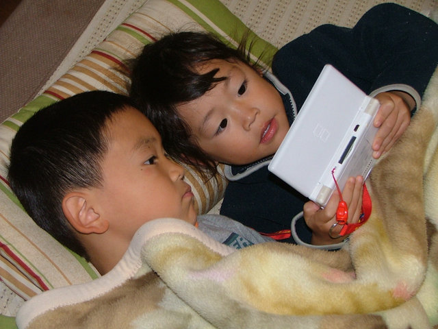 真白と一緒に寝っ転がり、私の目を盗んでいる“つもり”でDS。