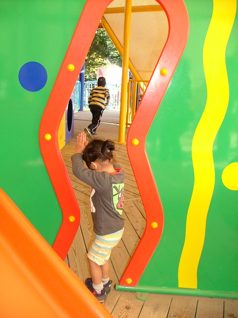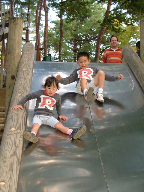 着いてすぐに どでかい遊具の中に2人を放し、私とパパはそれを見守りながらいろんな話をしました。