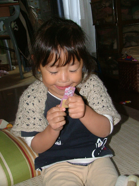 孫のためにとド−ナツをお土産に買ってきた母。湖白は嬉しそうに食べておりました。