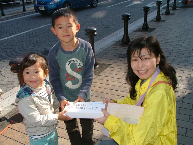 でも、どうすることが一番いい形での協力になるのか……。京佑くんに直接面識のない私達は、ここ数日、極身近な方々に協力していただいて募金を集め、今日、それを直接募金活動している方に自分たちの手で届ける事をスタ−トとすることにしました。