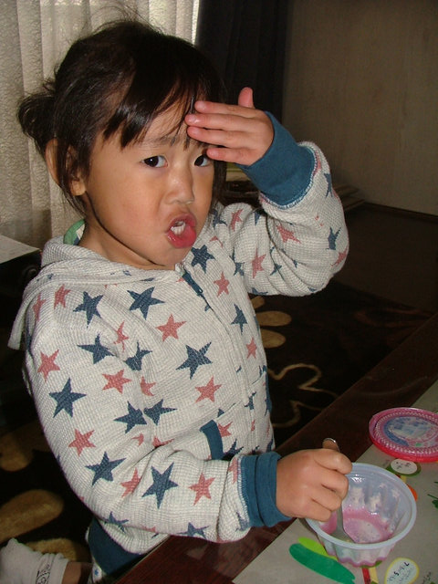 熱も少しあったけれど、注意してみなくてはならない点は脱水。嘔吐しているのに口から飲めず、飲んでもそれを吐いてしまう始末。口当たりのいい氷やアイスを口に入れ、何とかその状況を乗り切りました。