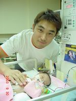 )という病気のことはある程度理解できたが、湖白に起こっているという実感が持てなかった。それもそのはず、23日に新生児室で眠っている湖白と別れてから湖白にはその時点で一度も面会していないのだ。NICUの外からは保育器に入っている湖白らしき赤ちゃんの周辺に医師や看護師さんが集まっているという程度にしか確認ができない。すべての説明が終わり、NICUの中に入り、やっと湖白と対面することができた。